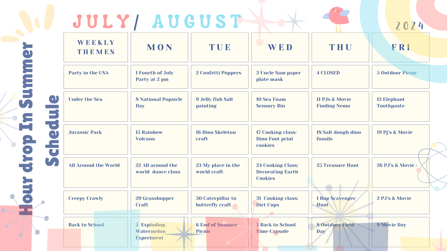 Hour Drop-In Child Care offers flexible and emergency child care services ​for children aged 6 weeks to 12 years. Our aim is to create a safe and social ​environment that nurtures physical, emotional, intellectual, and social ​growth.